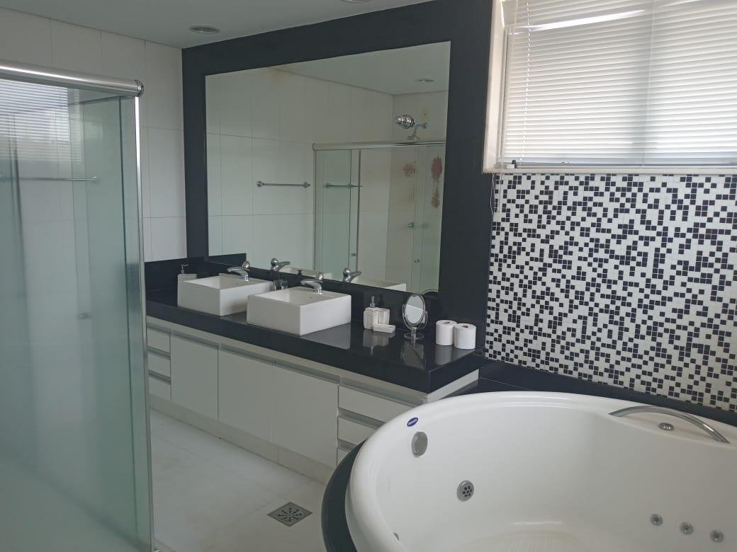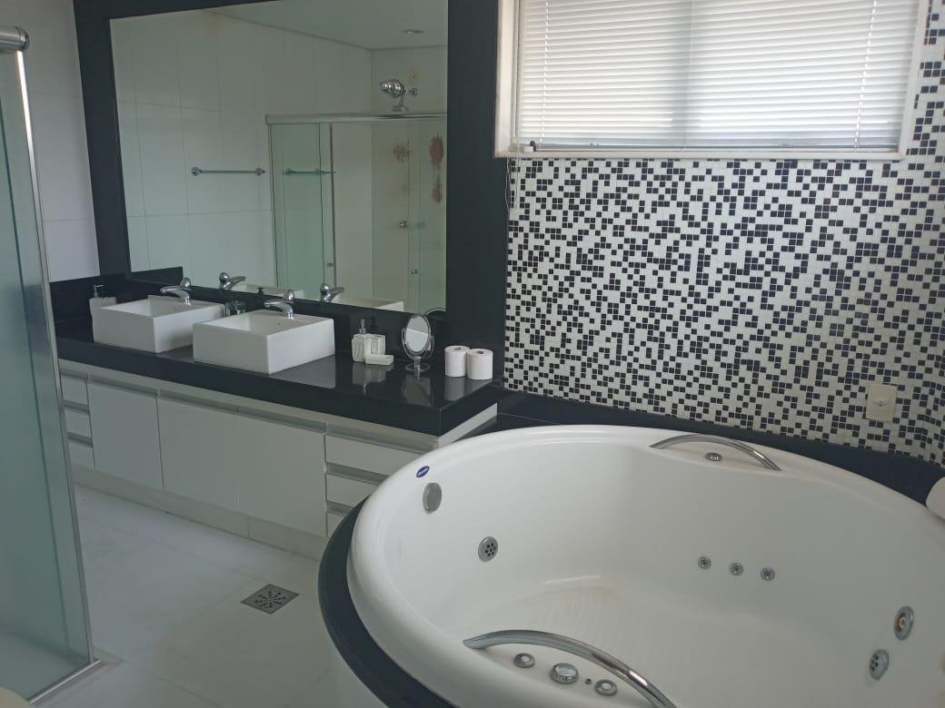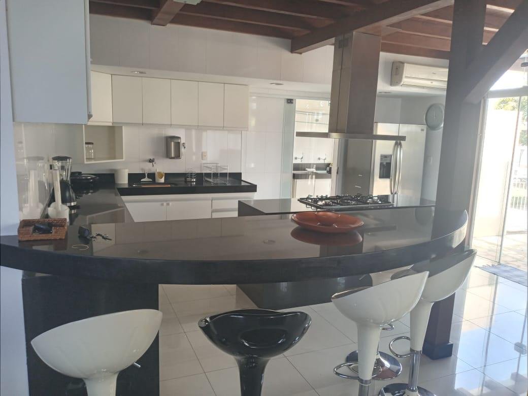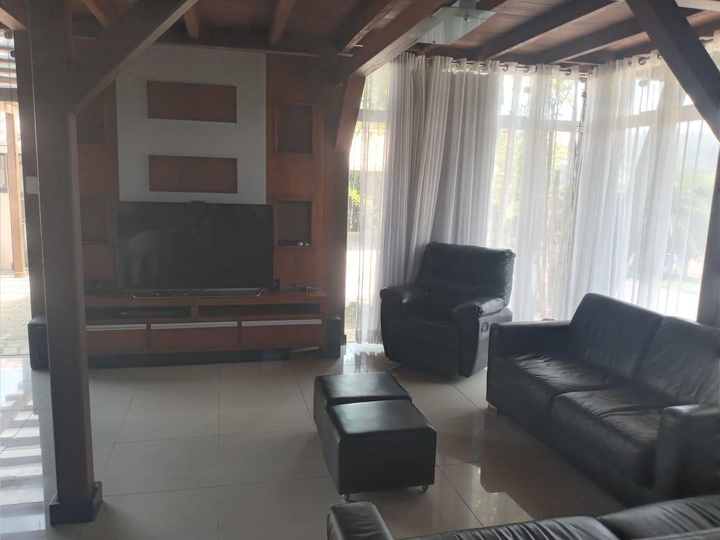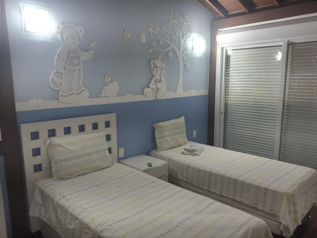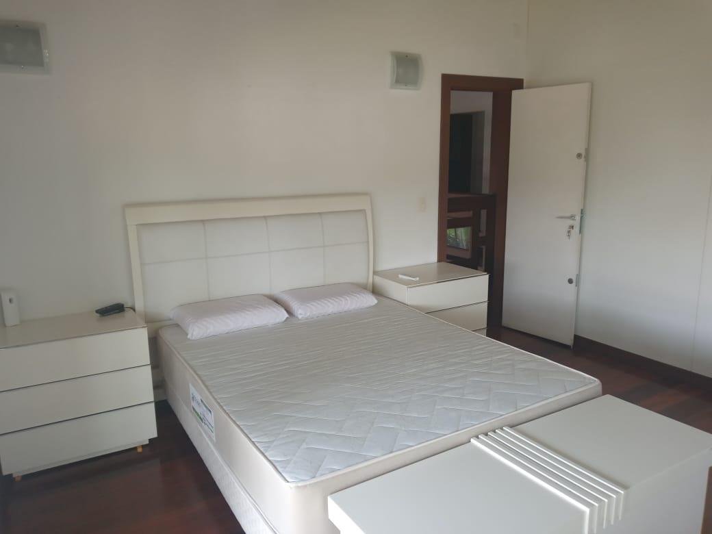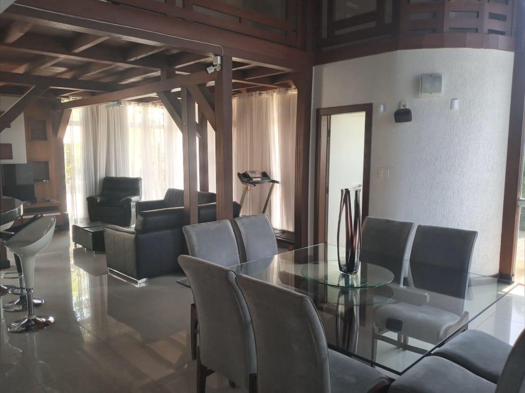 Maravilhosa casa duplex com 3 qtos, todos com varanda, 1 suíte master c/ closet, banheira de hidromassagem e duas cubas, 2 semi suítes, lavabo, sala p/ 3 ambientes c/ pé direito duplo conjugada com cozinha americana e 4 vagas livres cobertas, 300m2 de área construída, lote plano com 1.000m2, paisagismo exuberante e vista definitiva para mata nativa que margeia grande parte do condomínio. A edícula possui um lindo espaço gourmet com churrasqueira, fogão e forno à lenha, 2 qtos, banho social e amplo quintal plano. A casa possui aquecimento solar, excelente marcenaria, cortinas, e fica posicionada num dos melhores pontos do condomínio, trazendo total integração e vista definitiva para a mata.