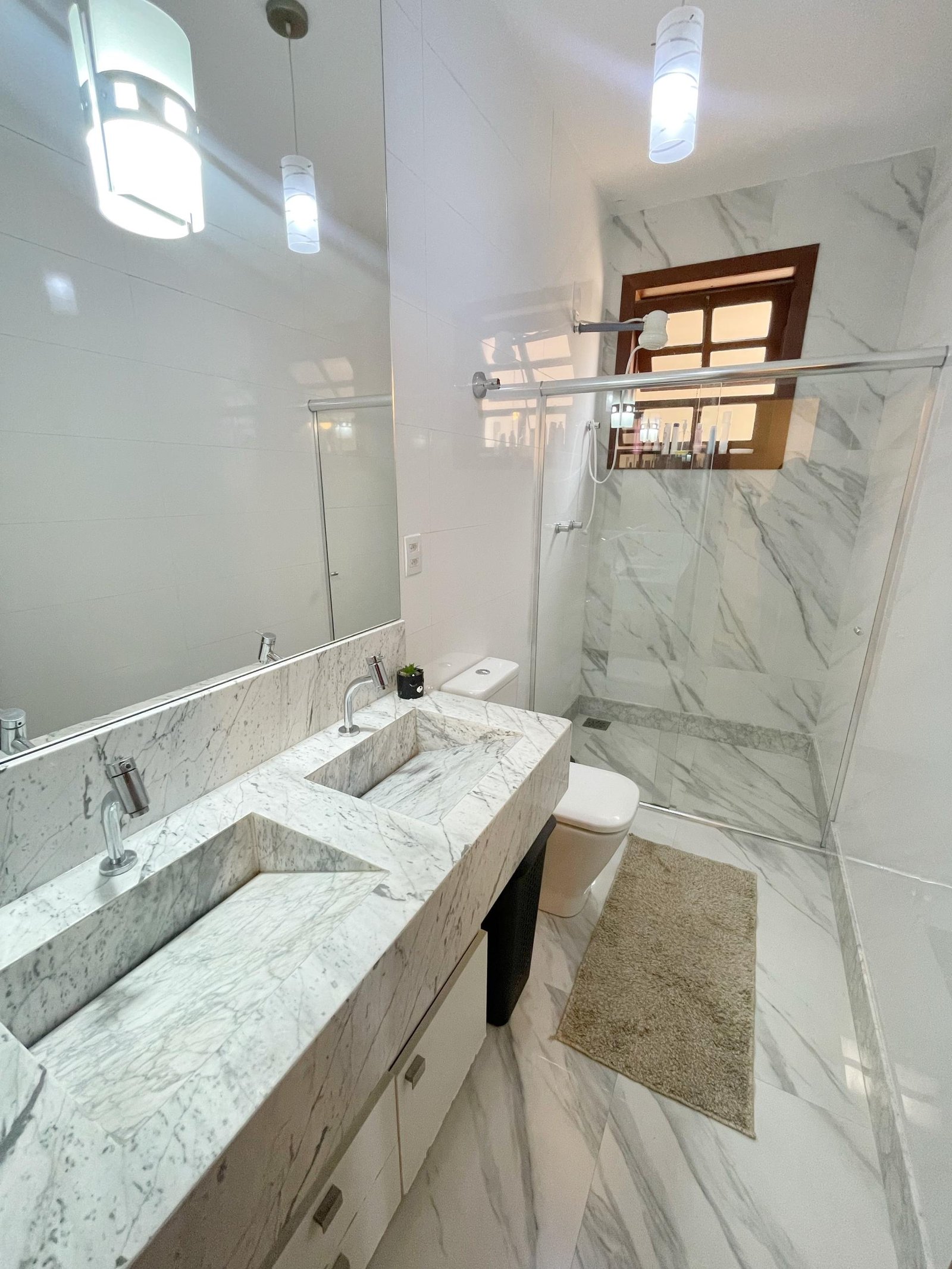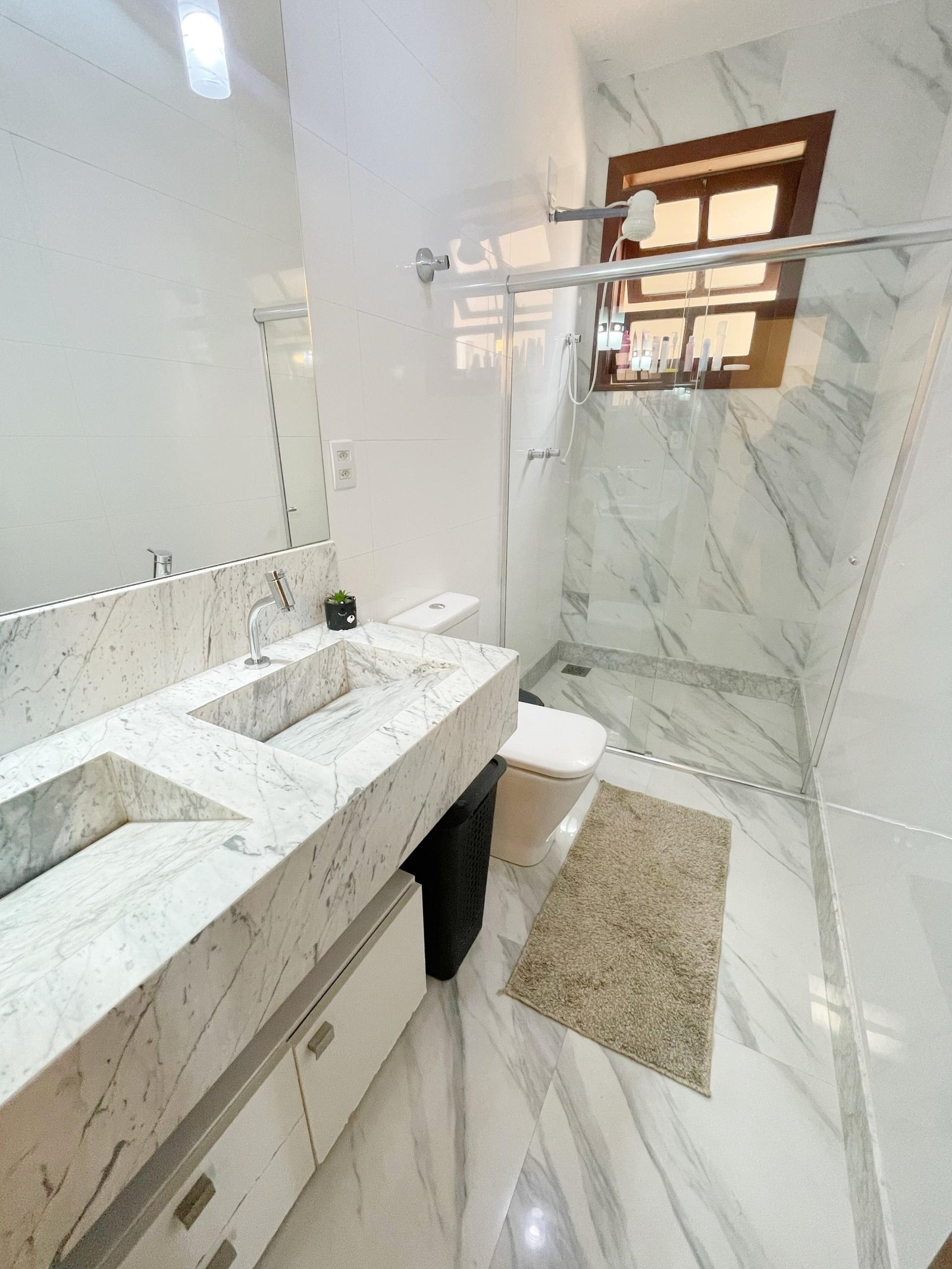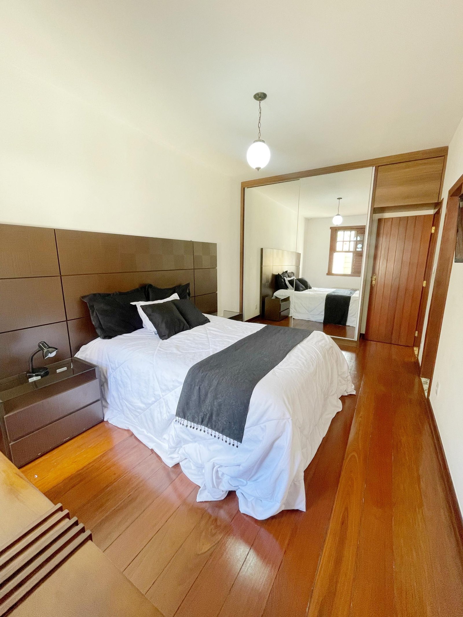 Casa com vista panorâmica, 4 quartos com piso em tábua corrida, 6 vagas de garagem, armários embutidos, portas e janelas de madeira maciça, piscina com acesso direto pra sauna, hidromassagem e cascata, área gourmet com churrasqueira, acabamento sofisticado em mármore carrara nos banheiros.