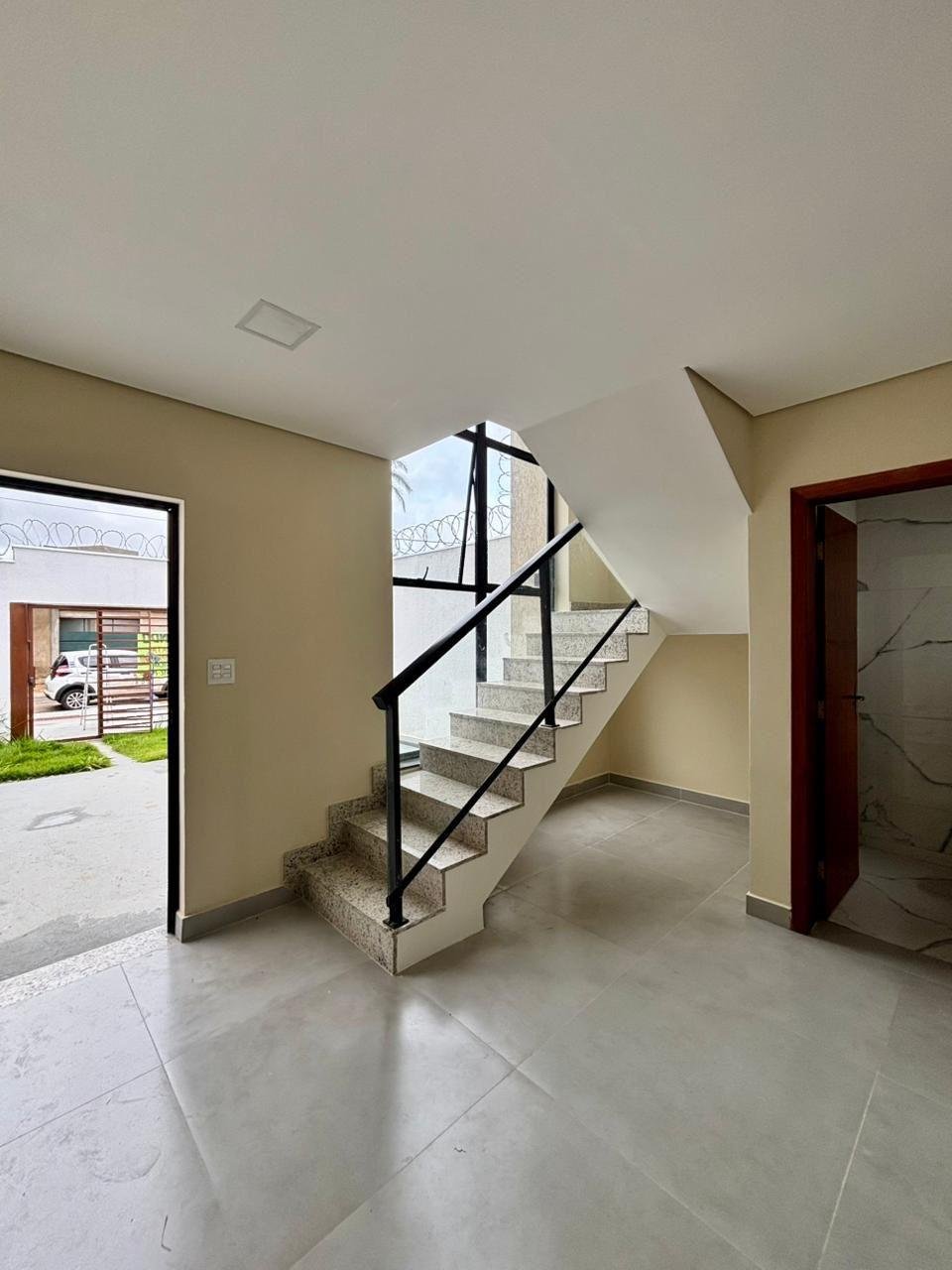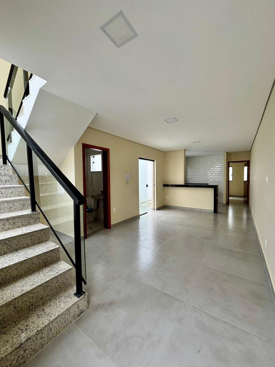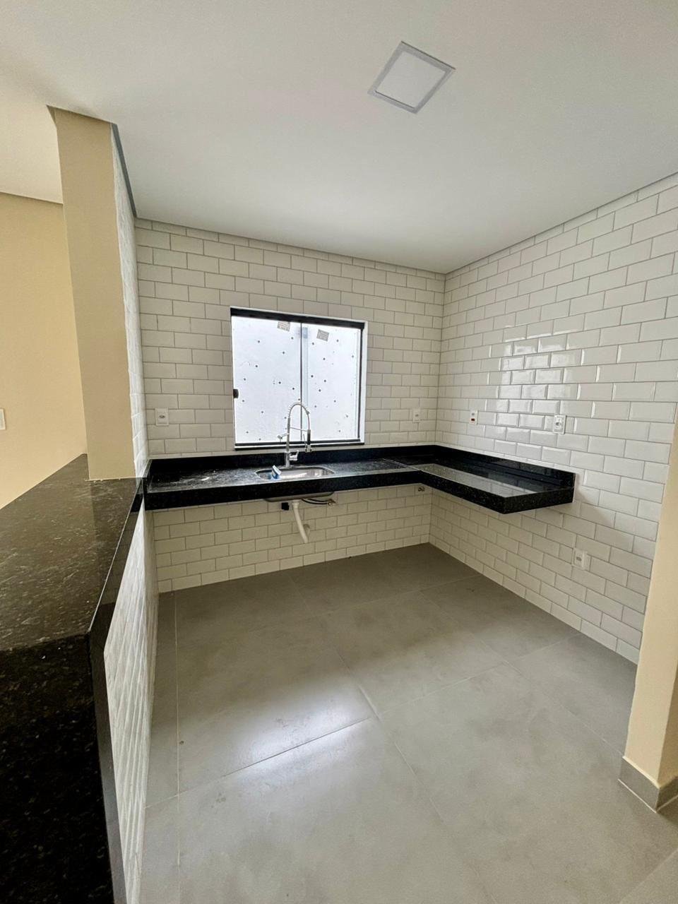 Casa em meio lote com terreno de 180m2, 110m2 de área construída, excelente padrão de acabamento, bancadas em granito, projeto luminotécino, iluminação 100% em Led, preparação para ar condicionado, aquecimento solar, 3 quartos, 1 suíte, sala conjugada com cozinha americana, espaçoso quintal gramado, vaga para 2 carros, documentação para financiamento.