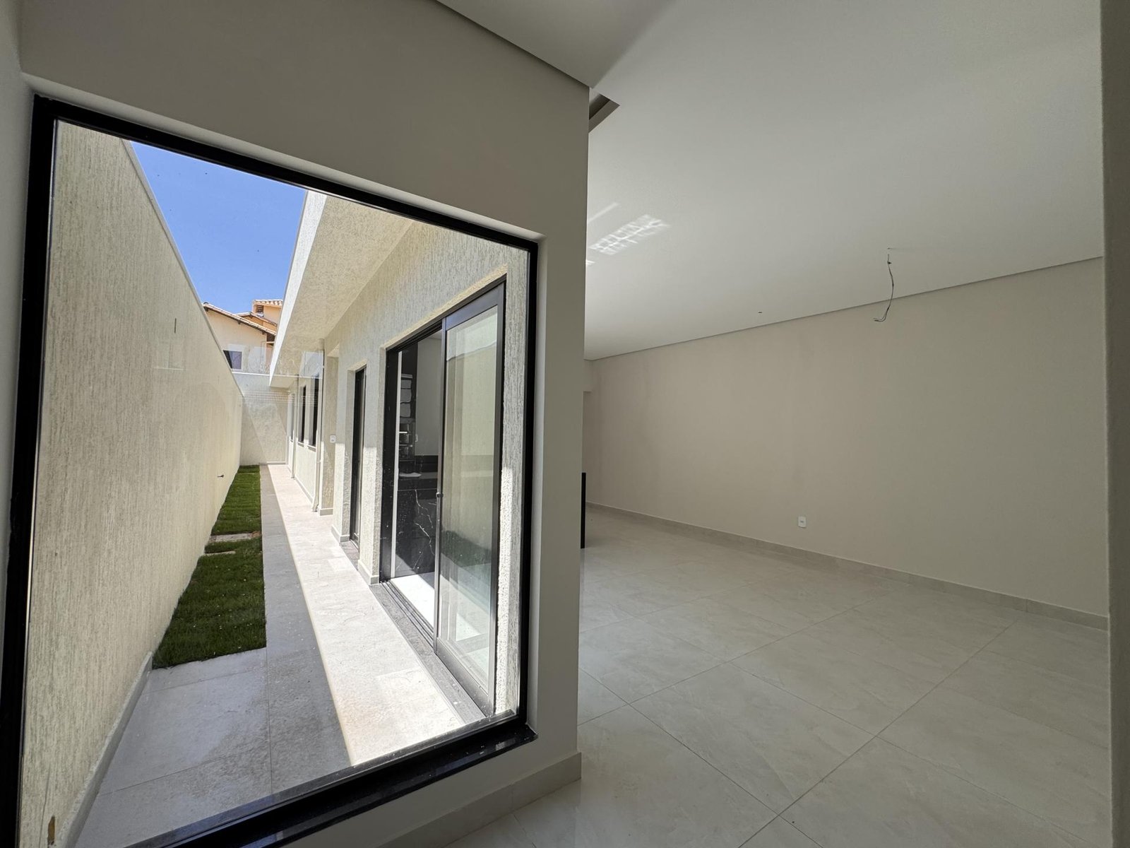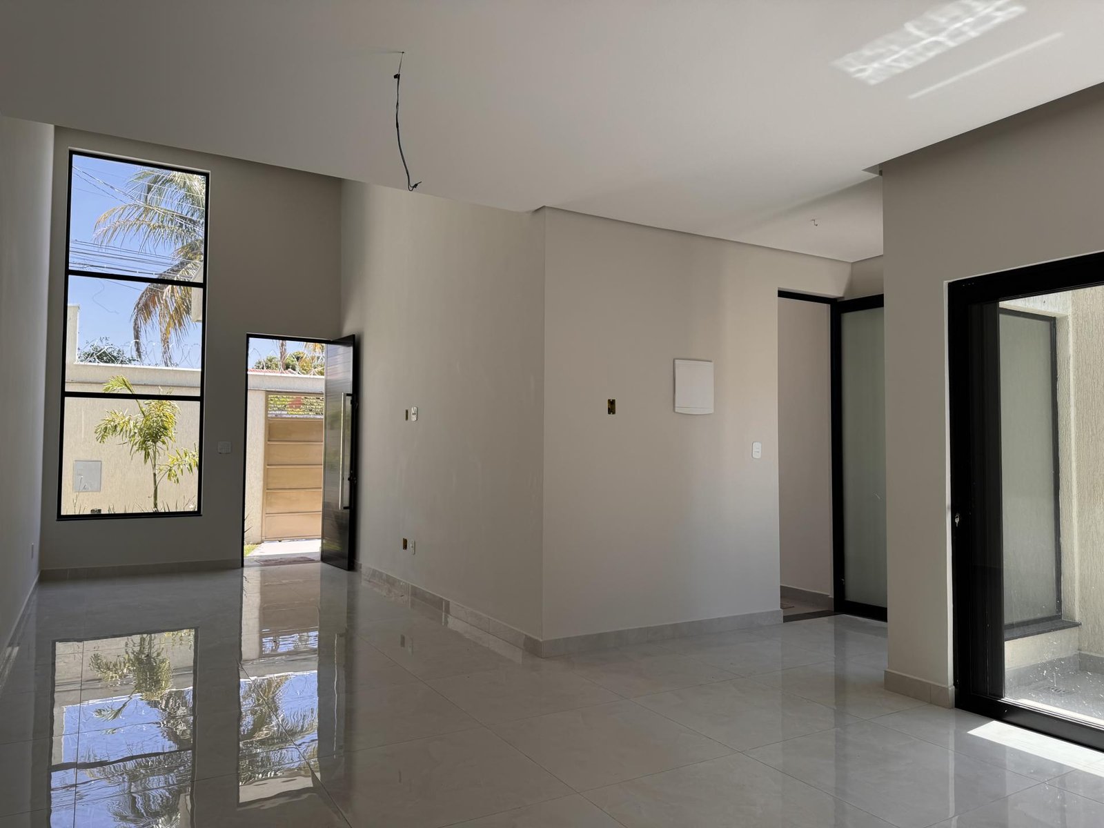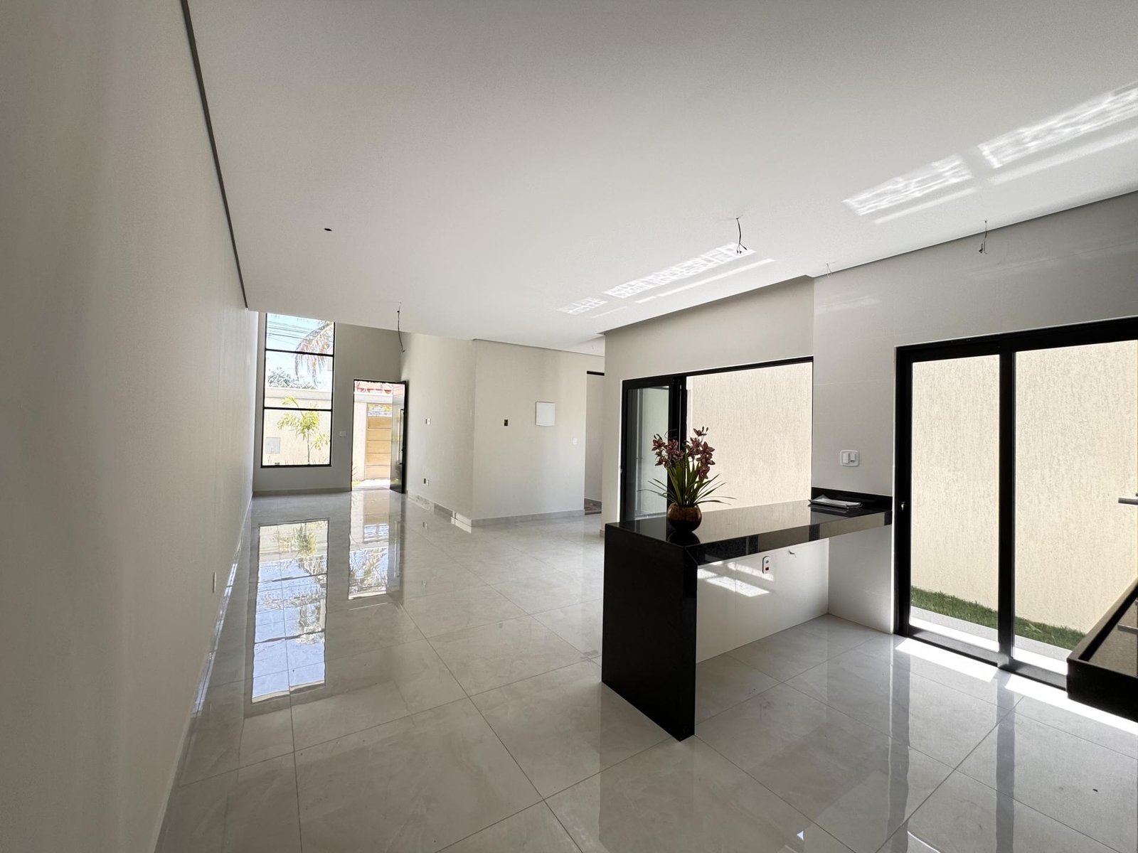 Moderna casa térrea em meio lote, sala para 3 ambientes conjugada com cozinha e churrasqueira