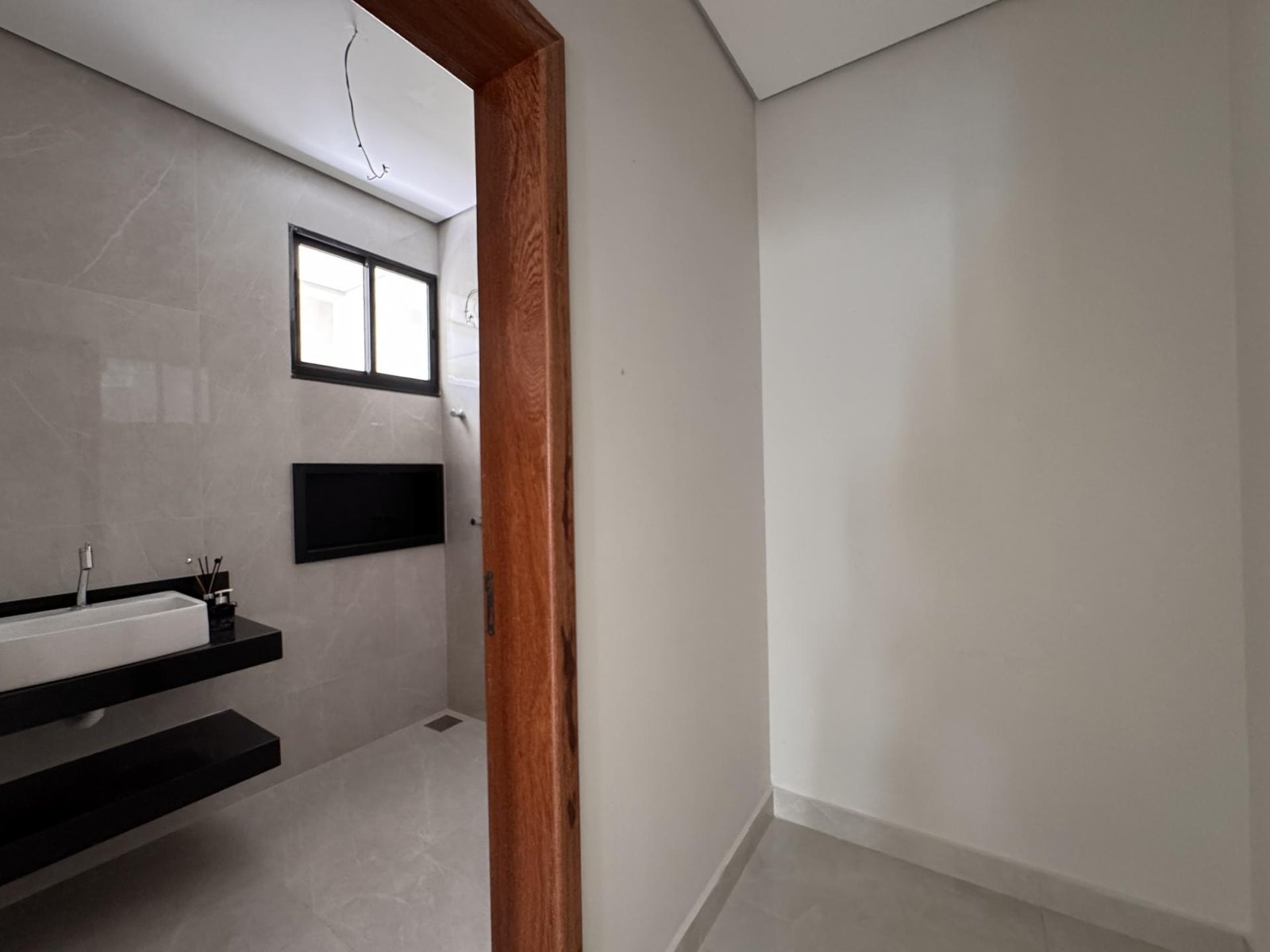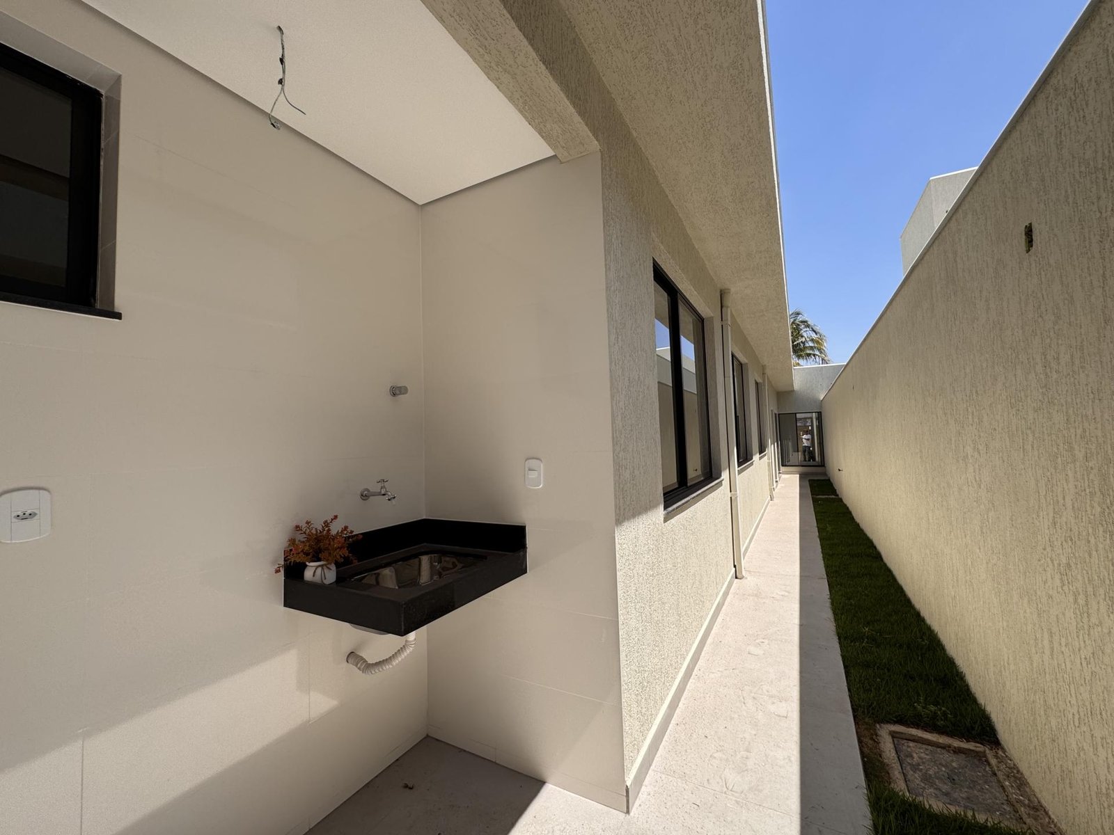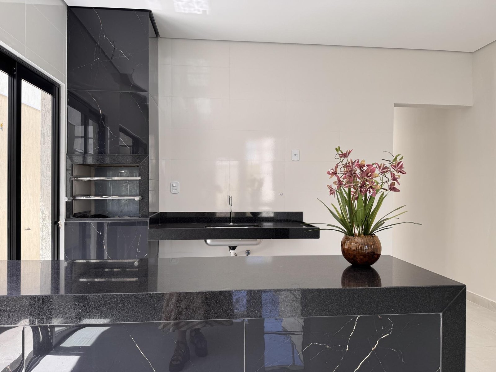 Moderna casa térrea em meio lote, sala para 3 ambientes conjugada com cozinha e churrasqueira