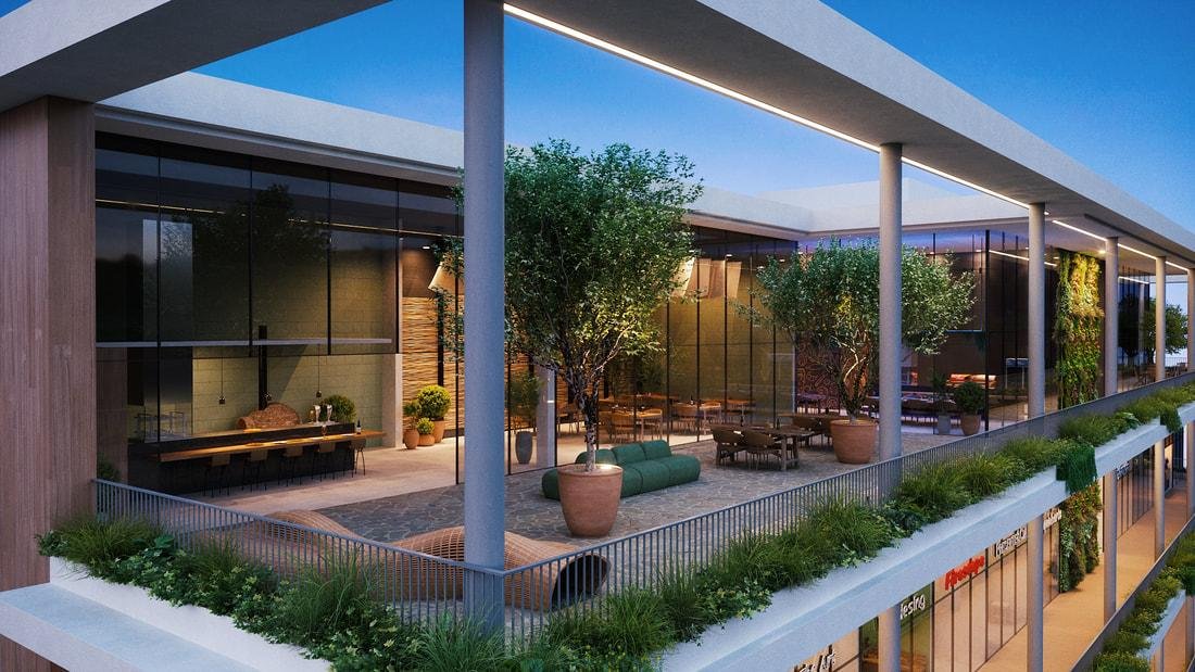 Um Mall sofisticado e exclusivo com 37 lojas, restaurantes, rooftop, estacionamento e som ambiente