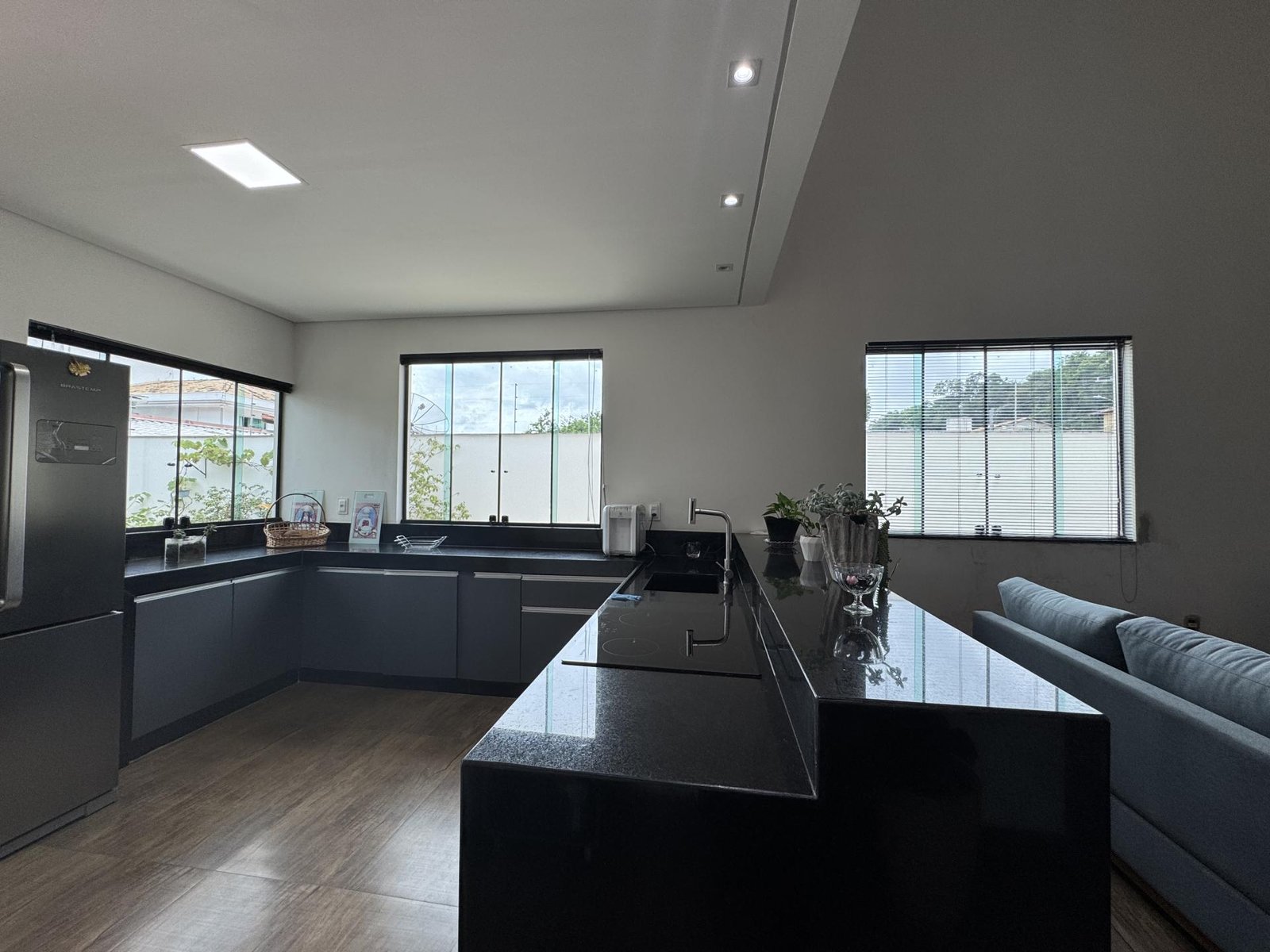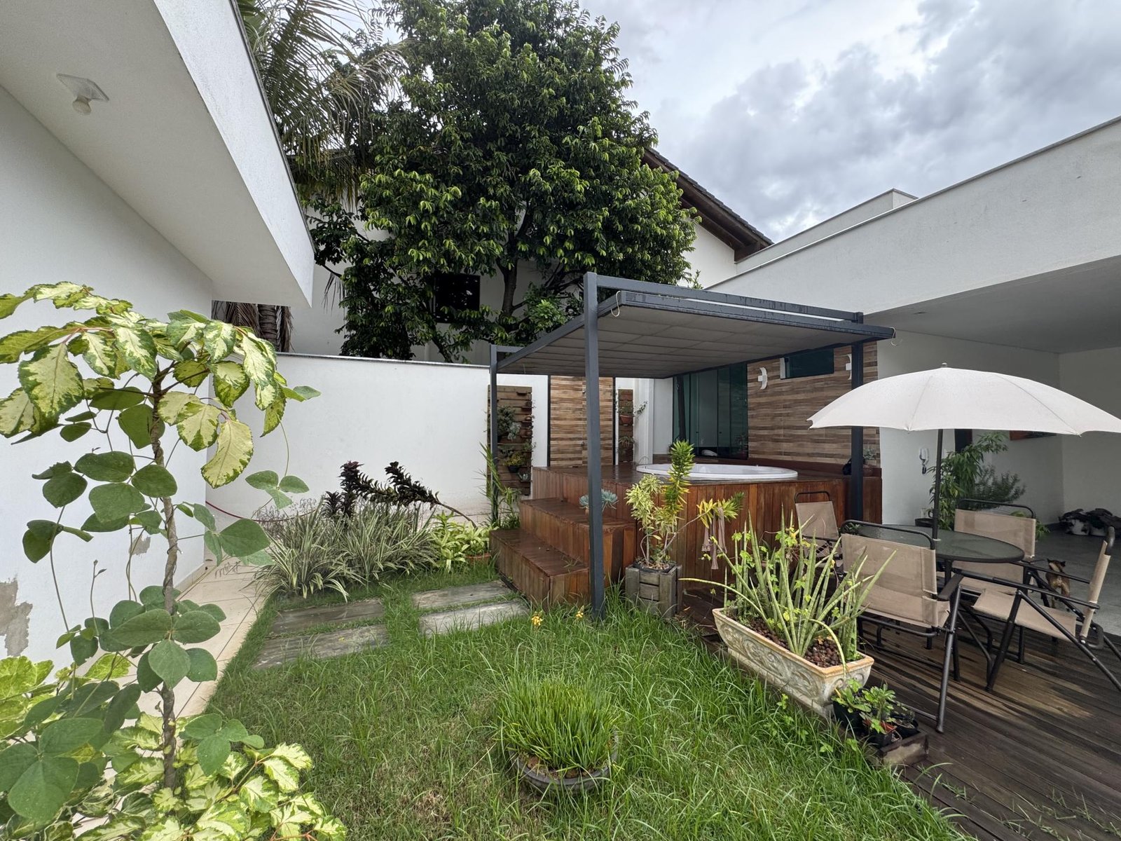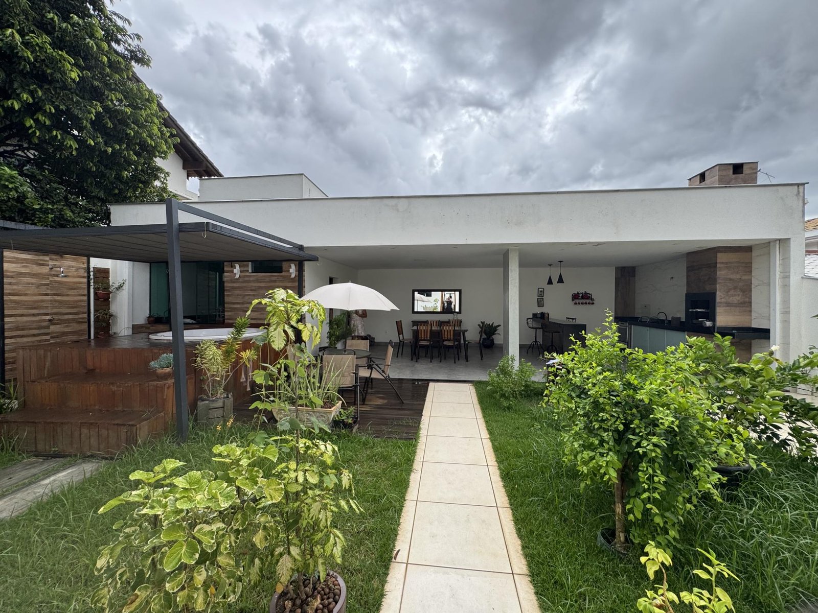 Moderna, plana, de alto padrão, aproximadamente 250m2 de área construída, 3 qtos, 1 suíte com closet, sala p/ 2 ambientes com pé direito duplo integrada com cozinha americana planejada, área gourmet com churrasqueira, spa, banheiro com lavabo, amplo quintal com lindo jardim, lavanderia e 4 vagas de garagem. Uma casa extremamente moderna, ambientes integrados, vista para mata, localizada em um dos bairros mais nobres da cidade, com segurança, imóveis de alto padrão pela vizinhança, além de uma área verde invejável, exclusivamente residencial, opções em comércios e serviços nas avenidas Edmeia Mattos Lazzarotti e Teotônio Parreiros Coelho. Imperdível!!!