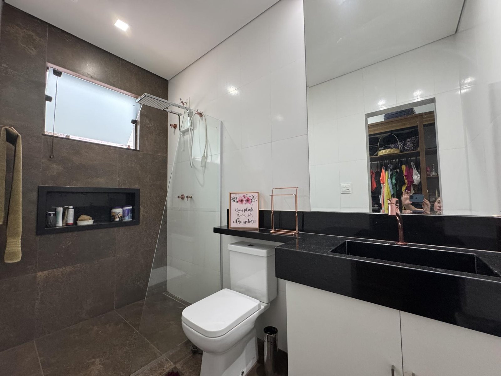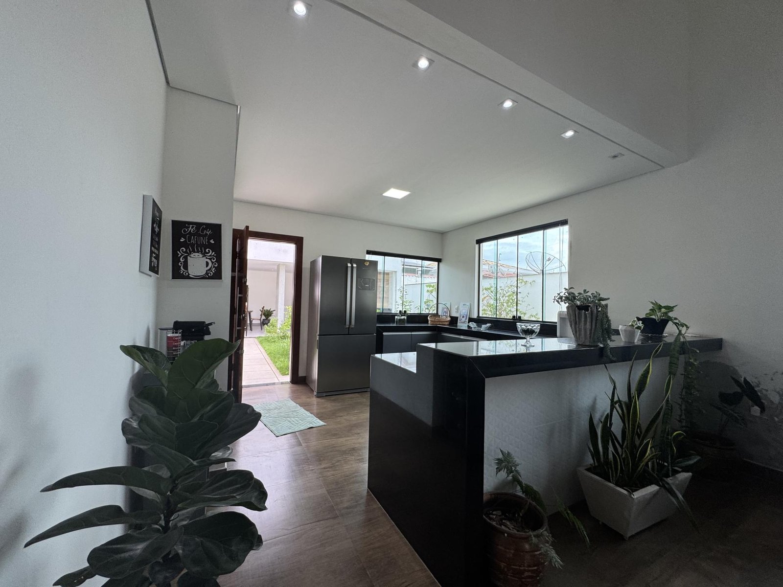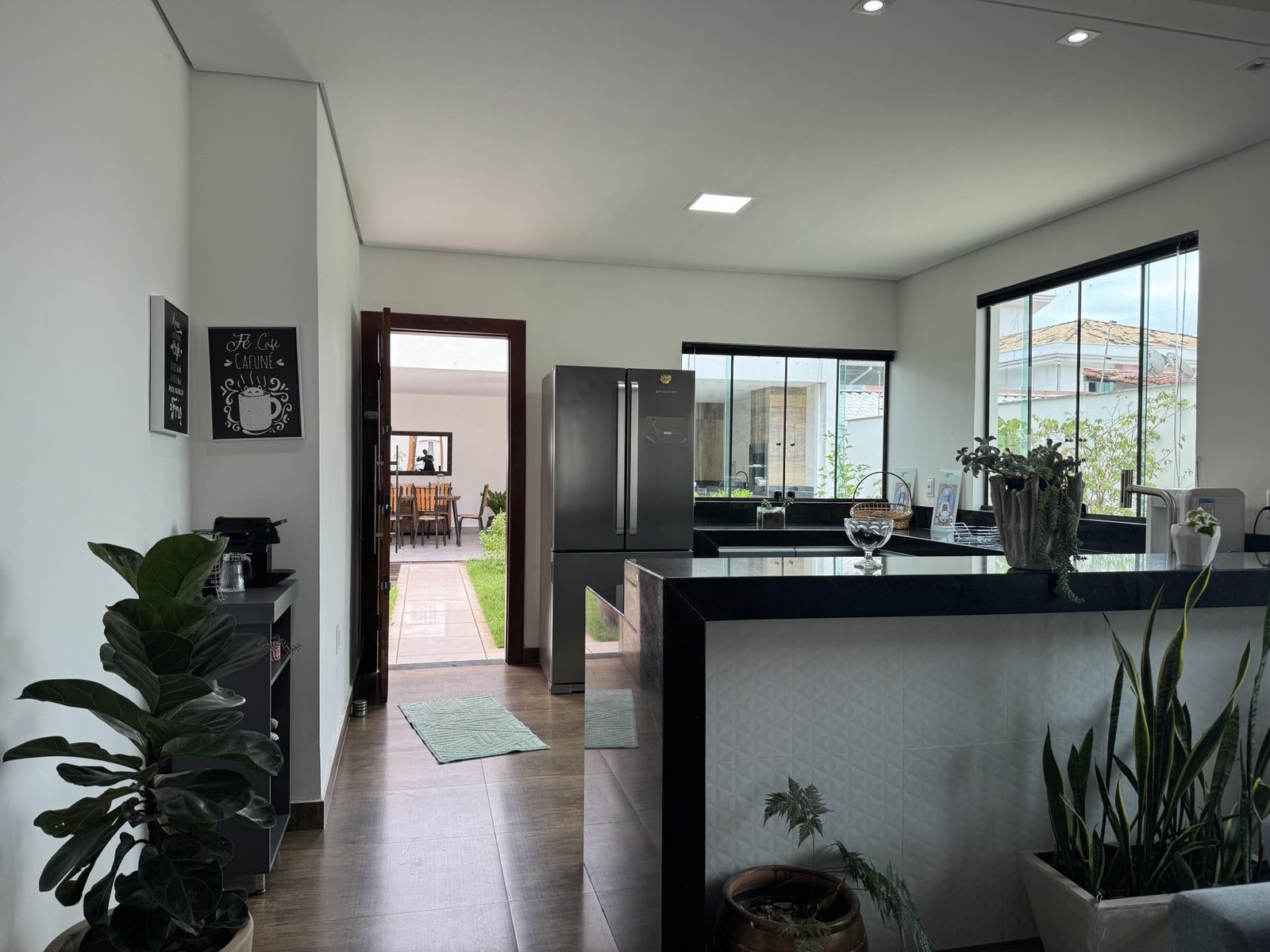 Moderna, plana, de alto padrão, aproximadamente 250m2 de área construída, 3 qtos, 1 suíte com closet, sala p/ 2 ambientes com pé direito duplo integrada com cozinha americana planejada, área gourmet com churrasqueira, spa, banheiro com lavabo, amplo quintal com lindo jardim, lavanderia e 4 vagas de garagem. Uma casa extremamente moderna, ambientes integrados, vista para mata, localizada em um dos bairros mais nobres da cidade, com segurança, imóveis de alto padrão pela vizinhança, além de uma área verde invejável, exclusivamente residencial, opções em comércios e serviços nas avenidas Edmeia Mattos Lazzarotti e Teotônio Parreiros Coelho. Imperdível!!!