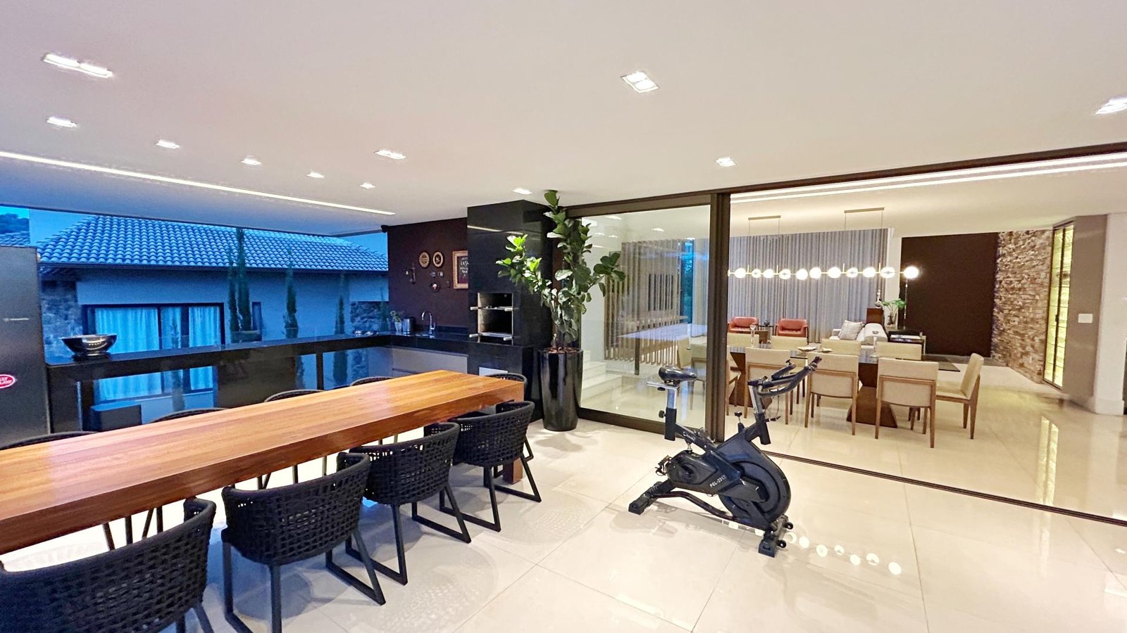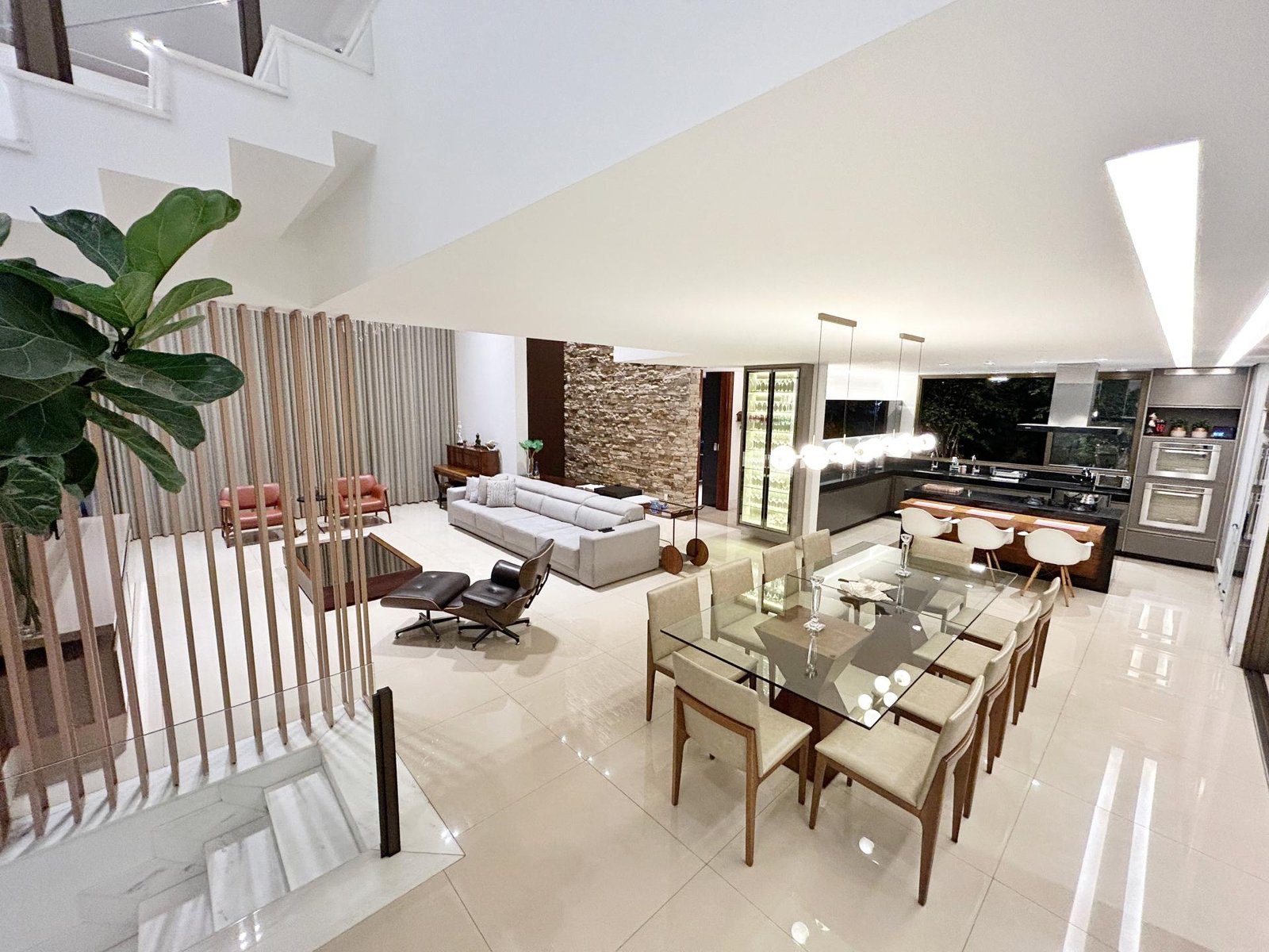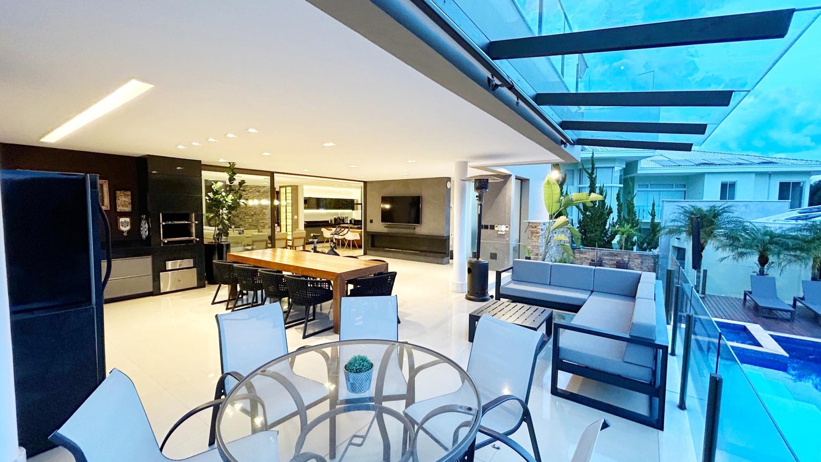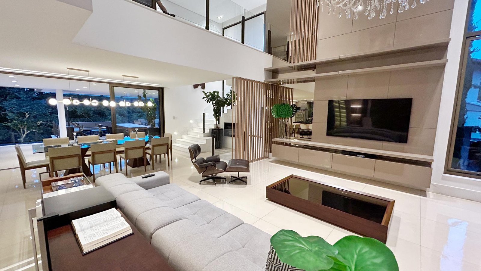 Um verdadeiro santuário dentro da cidade! Maravilhosa casa com 475m2 de área construída, lote com 1.950m2, paisagismo exuberante envolvendo todos os espaços da casa, assim como a iluminação externa, com espécies variadas, dentre elas, coqueiros, palmeiras, frutíferas e nativas da mata que margeia os fundos da casa e grande parte do condomínio. Com 3 suítes amplas com closet e varanda, suíte master com ampla varanda, banheiro com 2 duchas, cuba dupla e banheira de hidromassagem, sala com pé direito de 6 metros e amplas aberturas de vidro conjugada com cozinha e aparelho para 60.000 BTUS, lindo lavabo com bancada em travertino romano, moderna área gourmet com churrasqueira integrada com a casa, piscina grande com aquecimento solar, prainha e spa com aquecimento a gás, amplo deck e sauna. A casa possui aquecimento solar em todos os chuveiros e torneiras dos banheiros, inclusive as do lavabo, do banho da área gourmet e da cozinha, e ainda uma usina fotovoltaica instalada com 28 placas, cobrindo todo o consumo de energia. Os móveis planejados foram fornecidos em grande parte pela Linea D´oro, conferindo sofisticação, um acabamento impecável, com ferragens de alto padrão e durabilidade sem igual, persianas automatizadas na escada, rack e painel que cobre todo o pé-direito. A casa ainda possui ar condicionado em todas as 3 suítes e no escritório. Todas as esquadrias são em alumínio anodizado de alto padrão, metais sanitários e louças são todos da marca Deca e 3 vagas livres cobertas. A casa fica posicionada num dos melhores pontos do condomínio, trazendo total integração com a mata e uma vista definitiva dos principais cômodos, um imóvel exclusivo com total privacidade, vista definitiva para a mata e sofisticação.