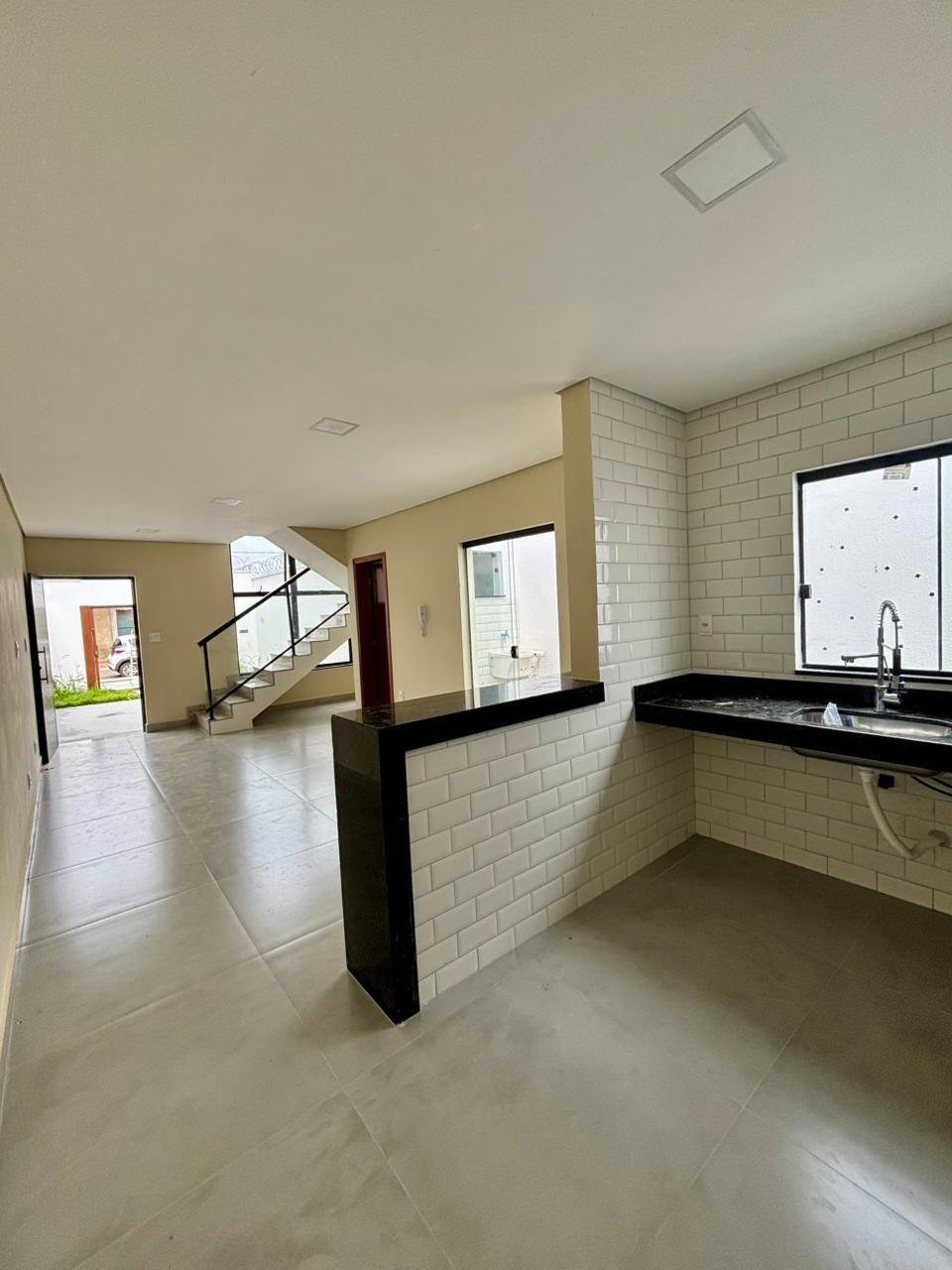 Casa em meio lote com terreno de 180m2, 110m2 de área construída, excelente padrão de acabamento, bancadas em granito, projeto luminotécino, iluminação 100% em Led, preparação para ar condicionado, aquecimento solar, 3 quartos, 1 suíte, sala conjugada com cozinha americana, espaçoso quintal gramado, vaga para 2 carros, documentação para financiamento.