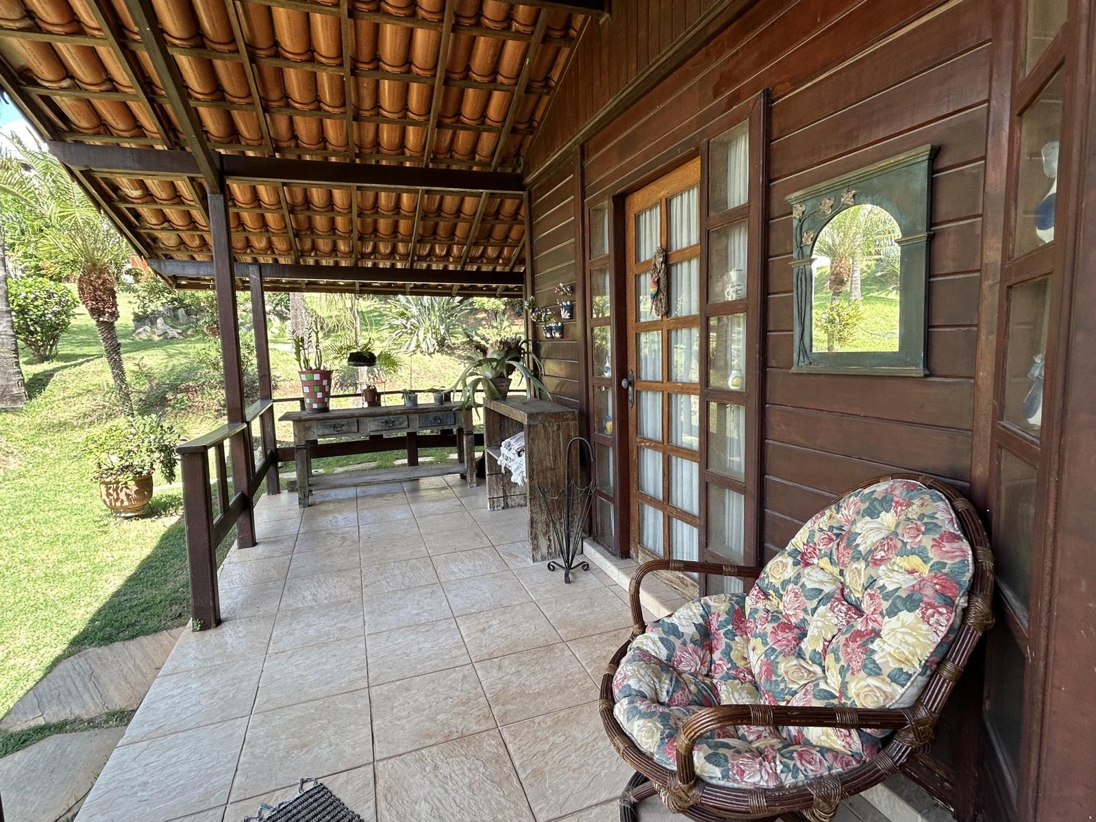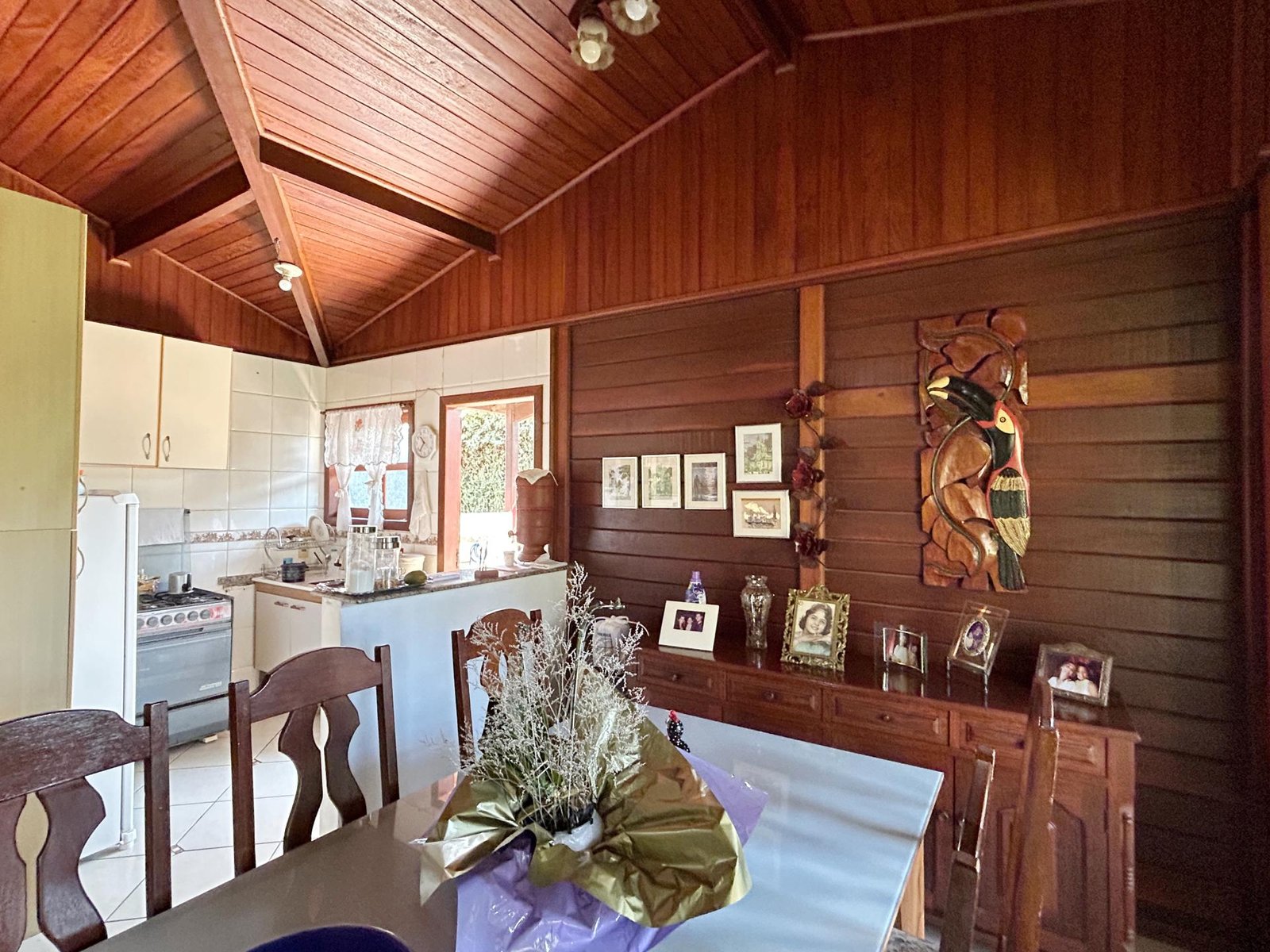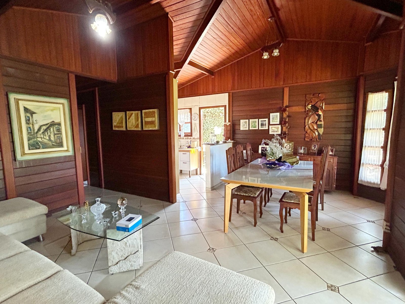 Casa térrea de madeira com 120m2 de área construída, edificada em lote inteiro, 3 quartos, suíte, sala integrada com cozinha, acabamento em porcelanato, portas de madeira maciça, ampla área verde.